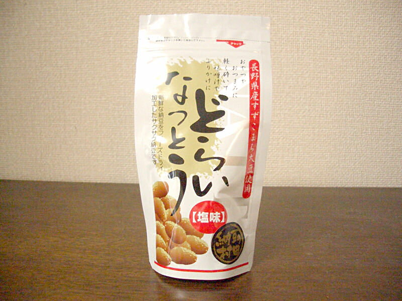 どらいなっとう(乾燥納豆)(ドライ納豆) 40gX5袋セット 価格: 1,575円 レビュー評価: 4.5 レビュー数:4 「どらいなっとう(乾燥納豆)」 美味逸品 商 品 説 明 長野県アルプスの麓の契約栽培農家の大豆から作った「納豆」に塩味をつけてそのまま凍結乾燥したお菓子感覚の「どらいなっとう」です。 * 平成12年に「思いっ○りテレビ」で「納豆のねばねばの中にある血栓を溶かす「ナットウキナーズ」が普通の納豆の2倍あり、血液サラサラ効果や記憶力アップ効果が乾燥納豆の方がよいとの実証結果がでた」と放送されました。*メーカー直送品となりますので、同梱はできません。 内 容 40gX5 原 材 料 名 大豆(国産、遺伝子組換えでない)、納豆菌、食塩 賞味期限 180日 Supported by 楽天ウェブサービス |